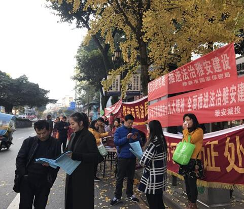 “學(xué)習(xí)貫徹黨的十九大精神 維護憲法權(quán)威”。我公司懸掛橫幅1條,準備憲法小知識及十九大精神宣傳單1000余張,認真接待來訪群眾并耐心解答群眾提出的法律問題,受到了市民的歡迎。整個上午共接待咨詢?nèi)罕?00余人次,所有宣傳單均發(fā)放給在場市民。本次活動對我公司進行了一次法律知識檢驗,進一步拉近了與群眾的距離,也使過往群眾受到一次深刻的法制教育。