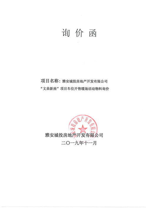 雅安城投房地產(chǎn)開(kāi)發(fā)有限公司詢(xún)價(jià)函