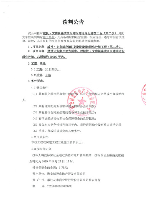 城投·文曲新座濆江河灘地綠化種植工程競(jìng)爭(zhēng)性談判公告(第二次)