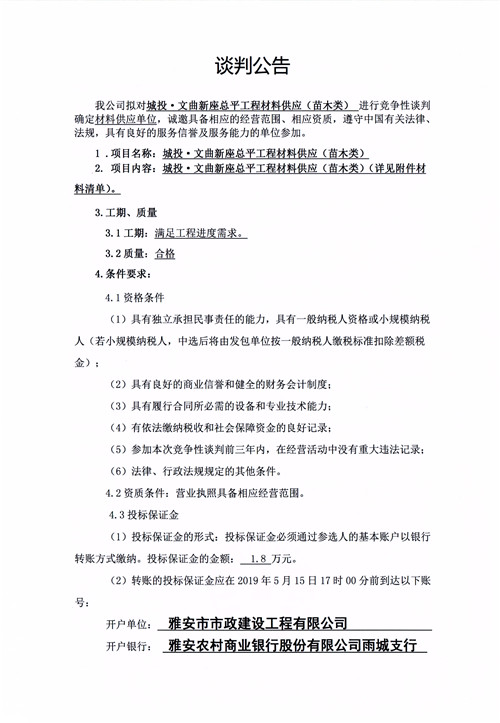 城投·文曲新座總平工程材料供應(yīng)(苗木類)競(jìng)爭(zhēng)性談判公告