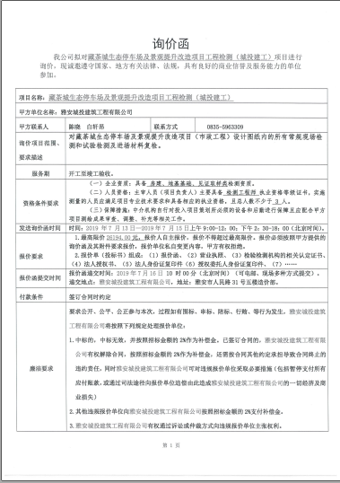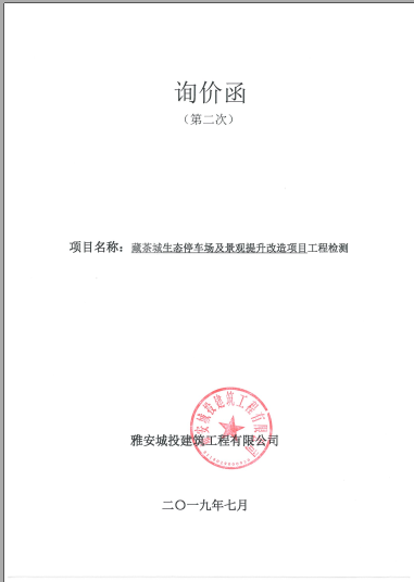 藏茶城生態(tài)停車(chē)場(chǎng)及景觀提升改造項(xiàng)目工程檢測(cè)詢(xún)價(jià)函
