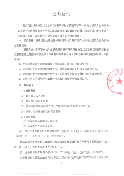 西康記憶文旅街區(qū)&藏茶博物館及藏茶茗茶一條街專項(xiàng)債券咨詢服務(wù)競爭性談判公告