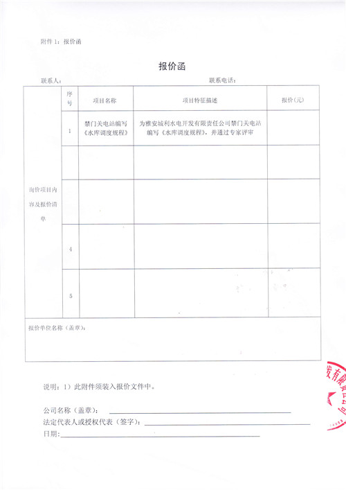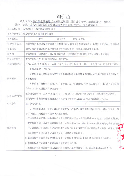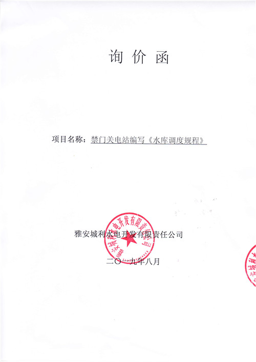 雅安城利水電開發(fā)有限責(zé)任公司禁門關(guān)電站編寫《水庫調(diào)度規(guī)程》競(jìng)爭(zhēng)性談判公告