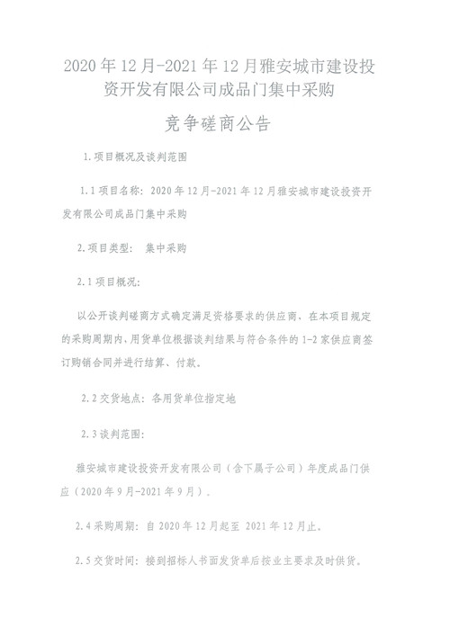 2020年12月-2021年12月雅安城市建設(shè)投資開發(fā)有限公司成品門集中采購(gòu)競(jìng)爭(zhēng)磋商公告
