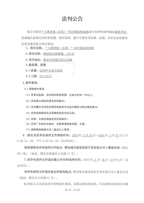 城投建工“大興壹號(北苑)”項目鋼結構裝修競爭性談判公告