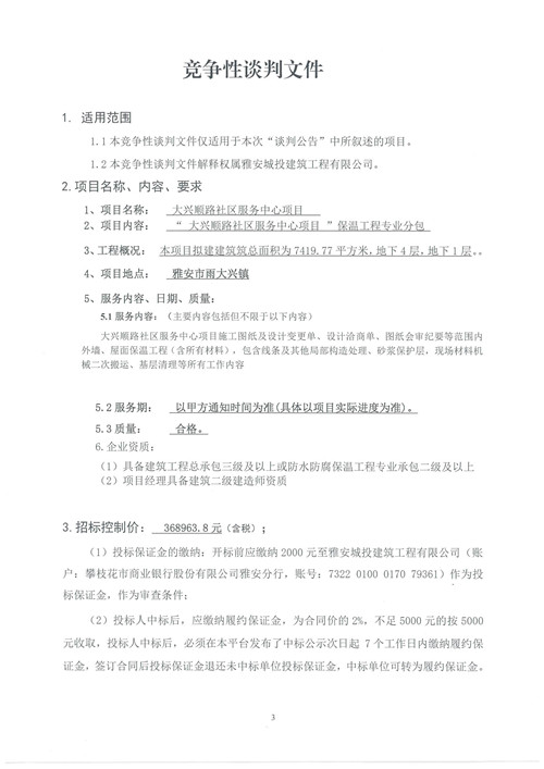 大興順路社區(qū)服務中心項目保溫工程專業(yè)分包競爭性談判公告