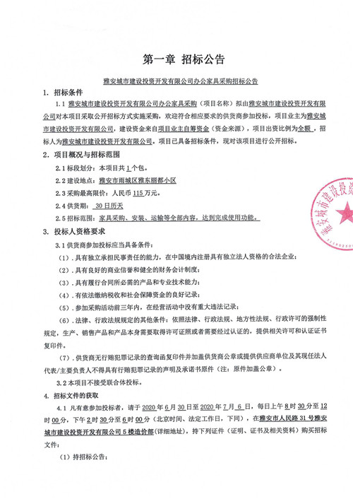 城投公司辦公家具采購招標(biāo)公告