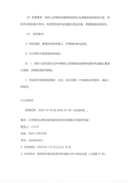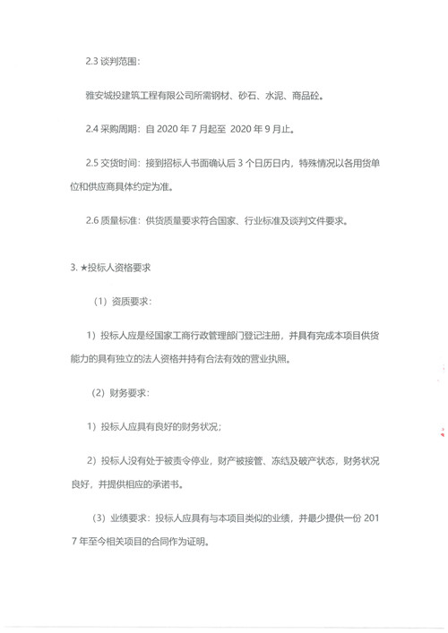 2020年7月-9月城投建筑工程有限公司鋼材、砂石、水泥、商品砼集中采購供應(yīng)商競爭性資格談判公告