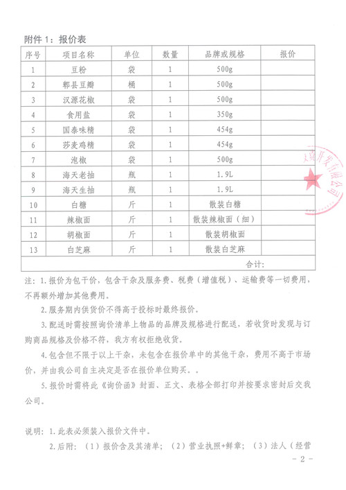 雅安城市建設(shè)投資開發(fā)有限公司食堂干雜詢價函