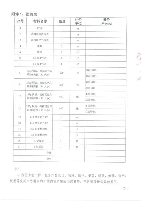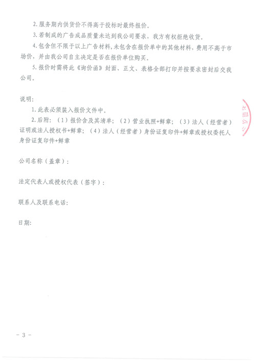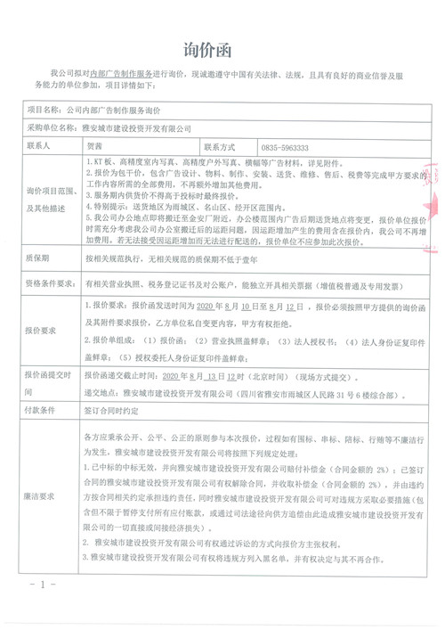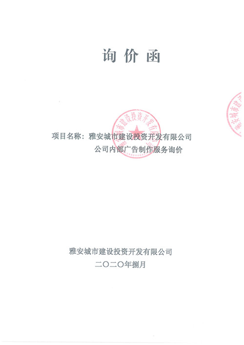 雅安城市建設投資開發(fā)有限公司公司內(nèi)部廣告制作服務詢價函