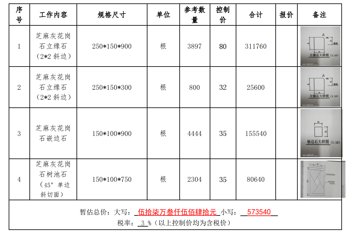 2、報價單位需提供250*150*300芝麻灰花崗石樣品,樣品在開標(biāo)之前送達。