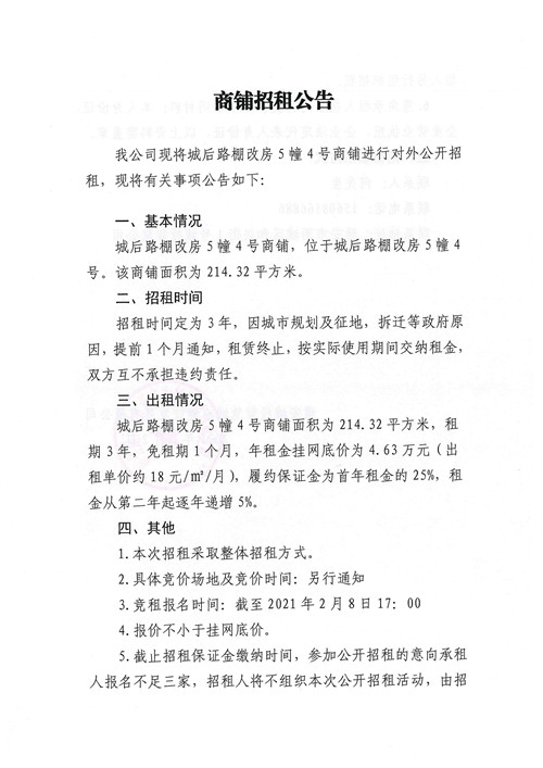 雅安城投智慧城市建設發(fā)展有限公司商鋪招租公告
