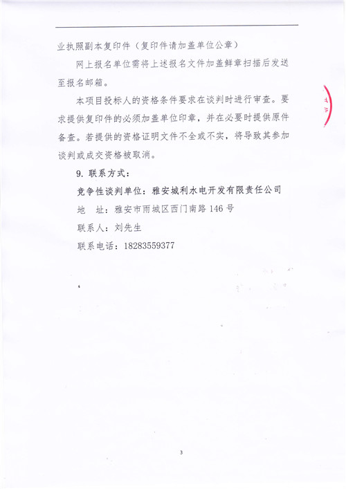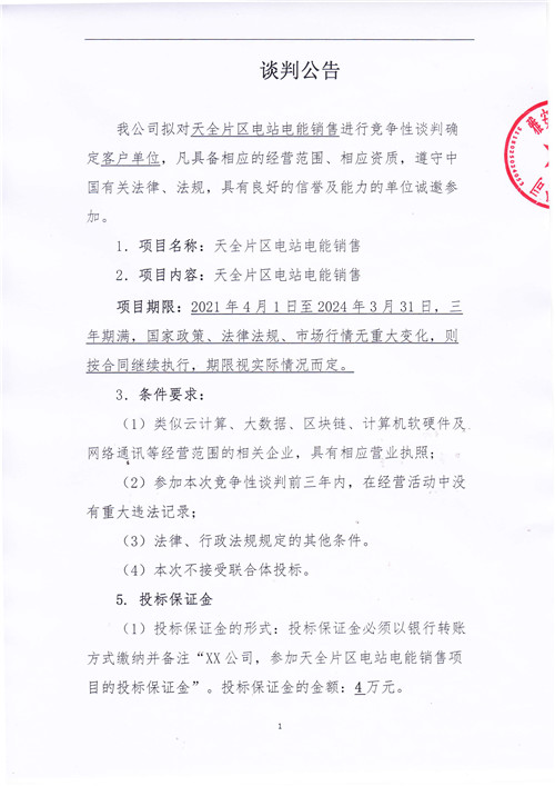 城投水電公司天全片區(qū)電站電能銷售競(jìng)爭(zhēng)性談判公告