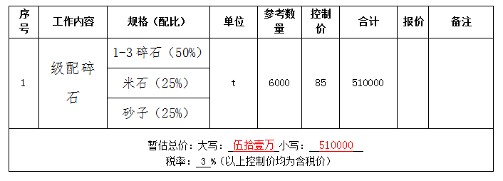 2.1項(xiàng)目內(nèi)容:雅安文教新城市政道路恢復(fù)重建項(xiàng)目(一標(biāo)段)級(jí)配碎石采購供貨商的確定,保障市政公司相關(guān)工程的順利進(jìn)行,具體貨物見材料清單(本招標(biāo)文件所附清單(數(shù)量、規(guī)格、種類)僅供參考,最終采購數(shù)量實(shí)際發(fā)生(分散采購)的為準(zhǔn))。