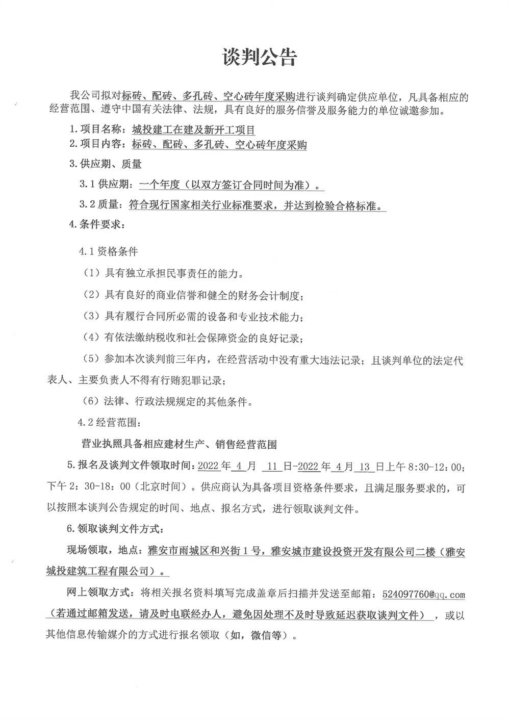 城投建工標(biāo)磚、配磚、多孔磚、空心磚年度采購競爭性談判公告
