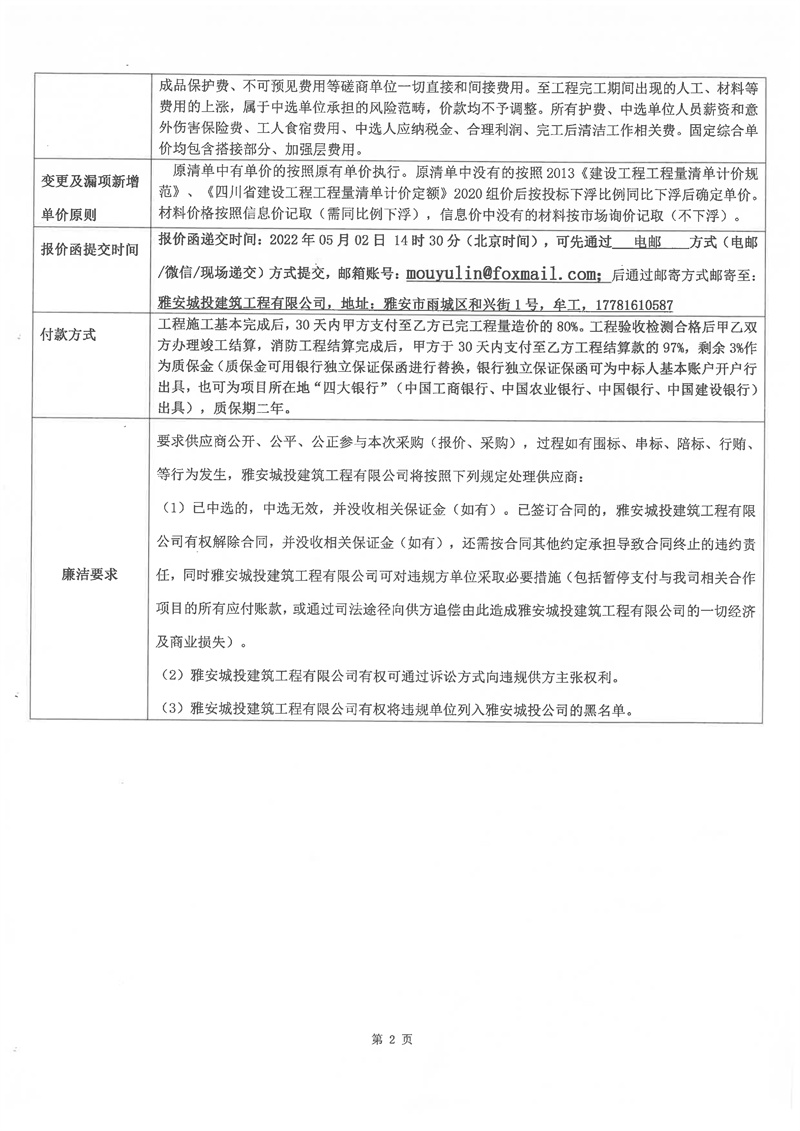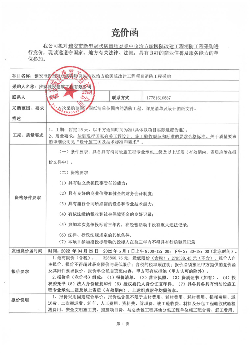 雅安市新型冠狀病毒肺炎集中收治方艙醫(yī)院改建工程項(xiàng)目消防工程采購競(jìng)價(jià)公告