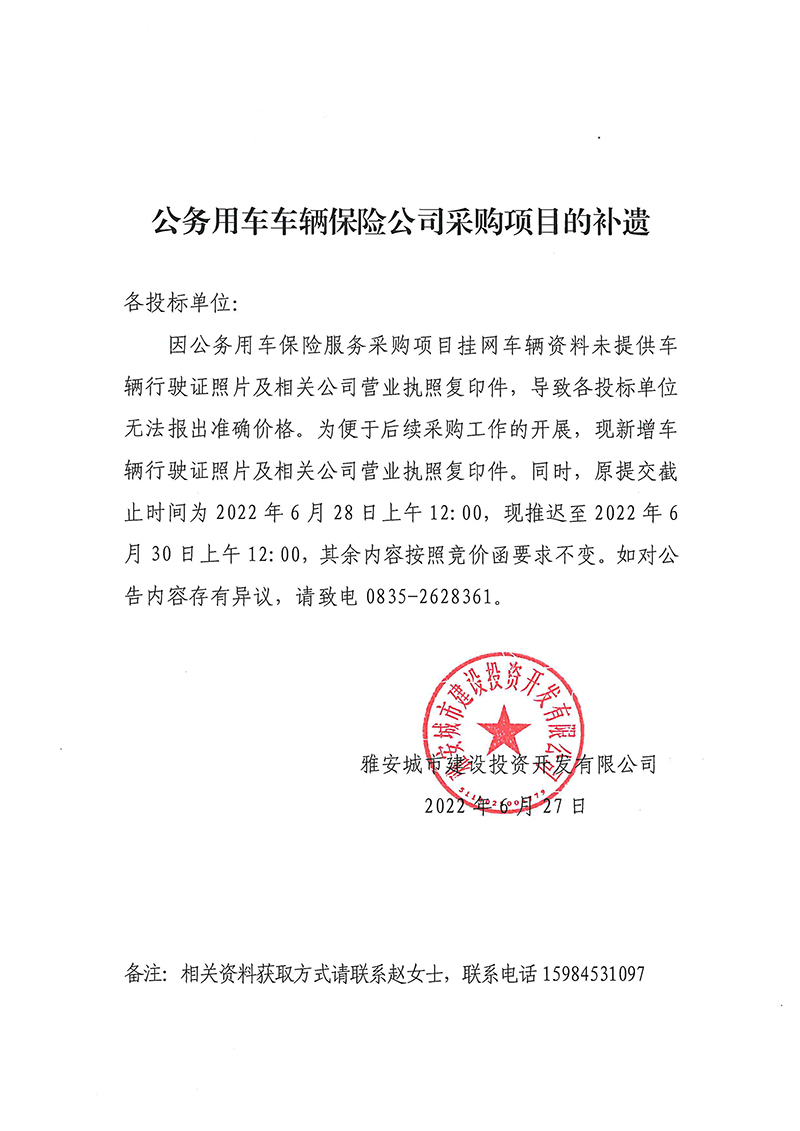 公務(wù)用車車輛保險公司采購項目的補(bǔ)遺