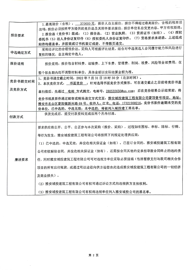 蒙頂壹號(hào)項(xiàng)目橋架采購(gòu)(第二次)競(jìng)價(jià)公告