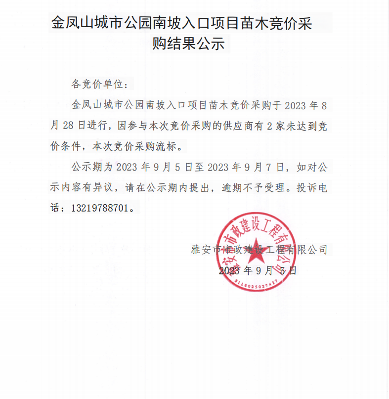 金鳳山城市公園南坡入口項(xiàng)目苗木采購競價(jià)采購結(jié)果公示