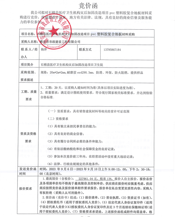 石棉縣醫(yī)療衛(wèi)生機構(gòu)災(zāi)后加固改造項目pvc塑料膠復(fù)合地板采購競價公告