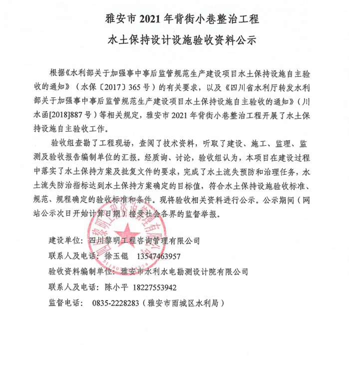 雅安市2021年背街小巷整治工程水土保持設(shè)計設(shè)施驗收資料公示