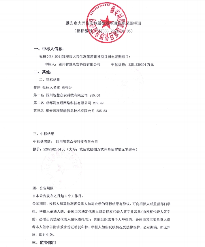 雅安市大興生態(tài)旅游建設(shè)項(xiàng)目弱電采購項(xiàng)目公告