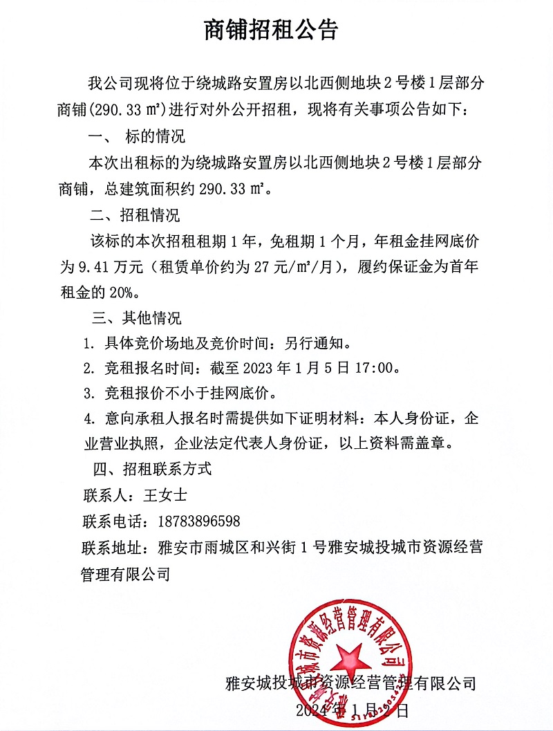 繞城路安置房以北西側(cè)地塊2號(hào)樓1層部分商鋪招租公告