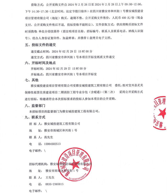 寶興縣靈關(guān)保障性租賃住房建設(shè)項目二期消防工程專業(yè)分包(含暖通)(第二次)公告