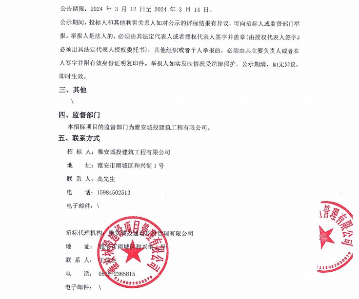 寶興縣靈關(guān)保障性租賃住房建設(shè)項目二期消防工程專業(yè)分包(含暖通)(第二次)中標(biāo)候選人公示