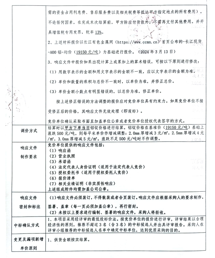 雅州壹號(hào)院鋁單板材料采購競價(jià)公告