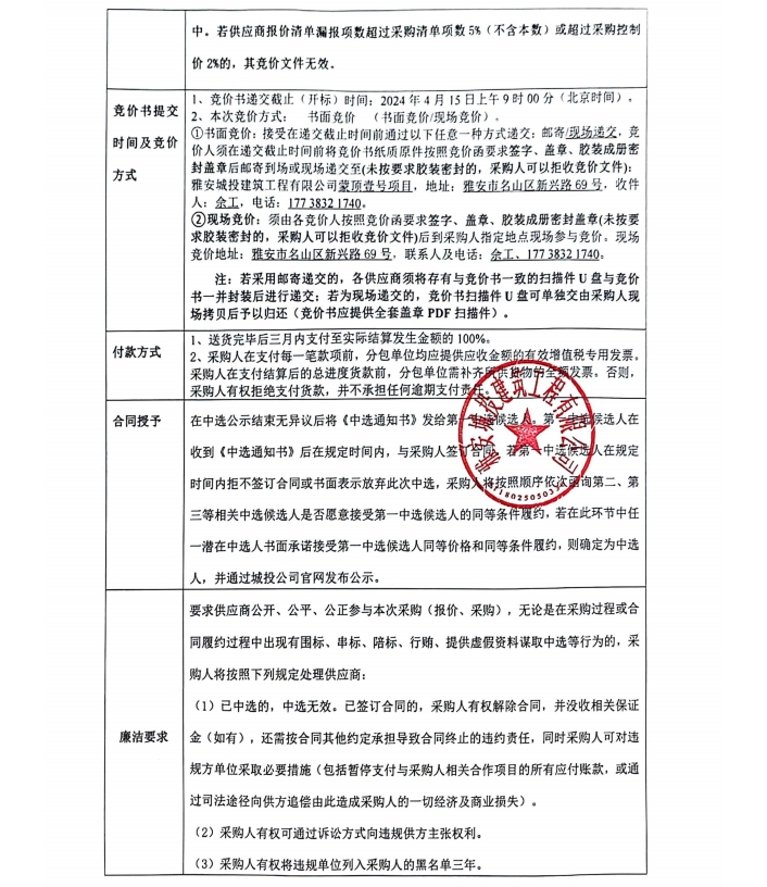 蒙頂壹號(hào)項(xiàng)目零星材料采購(gòu)競(jìng)價(jià)公告
