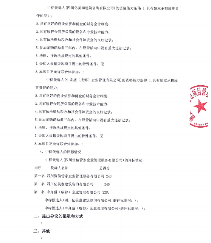 雅安市雅城建筑工程有限公司建筑工程施工總承包貳級資質(zhì)新辦咨詢服務采購項目中標候選人公示