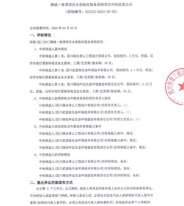 雅城·格調項目水保驗收服務采購項目評標結果公示