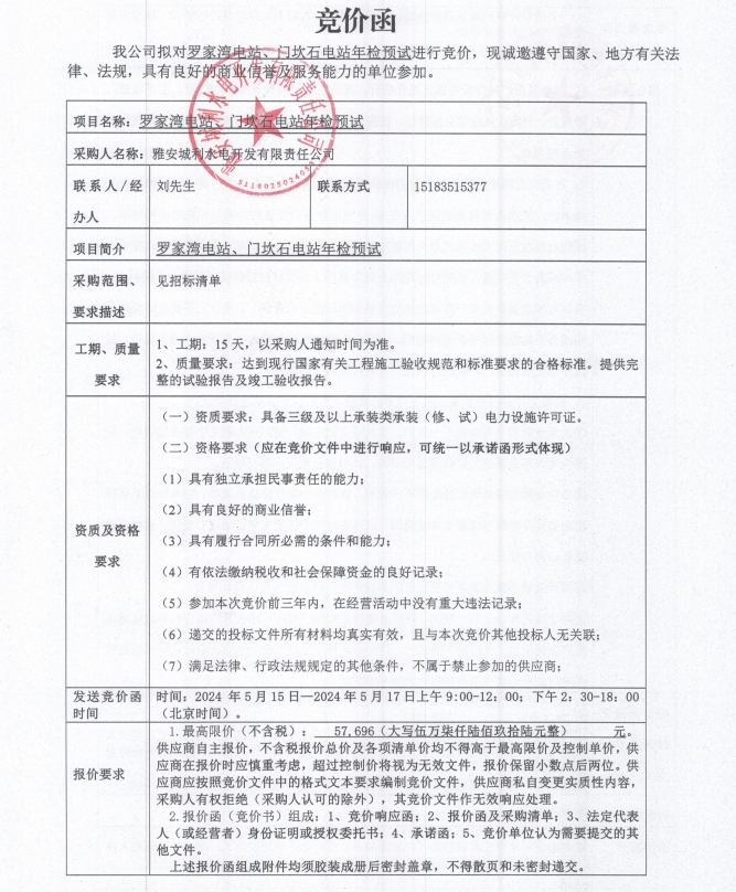 羅家灣電站、門坎石電站年檢預(yù)試競價公告
