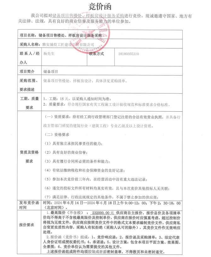 競價函-設(shè)計服務(wù)采購-雅州印
