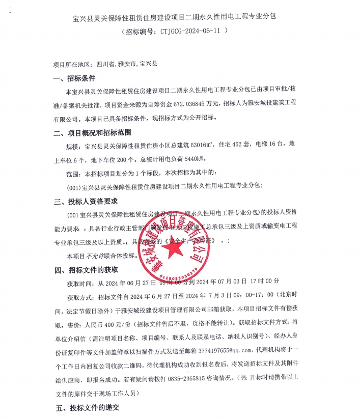 寶興縣靈關(guān)保障性租賃住房建設(shè)項目二期永久性用電工程專業(yè)分包公告