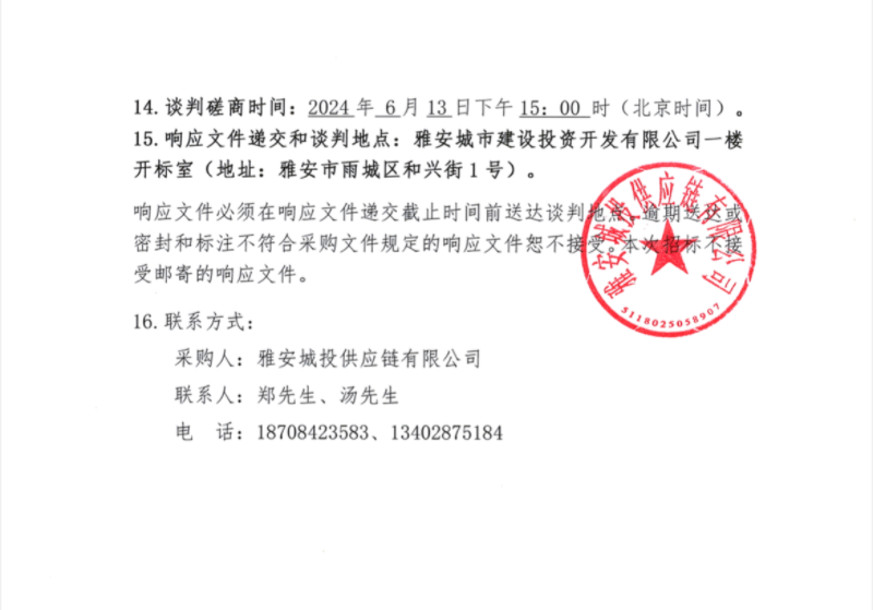 2024年6月-2025年5月雅安城投供應鏈有限公司混凝土、砂漿采購公告