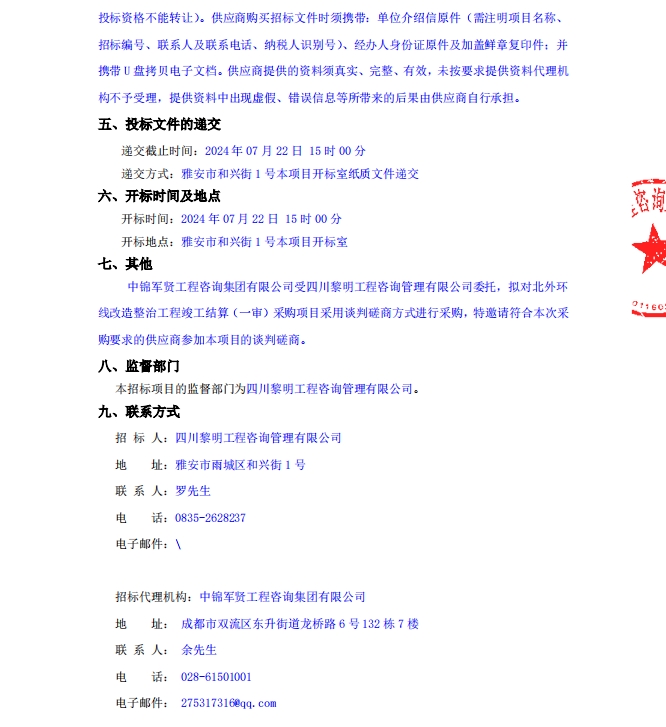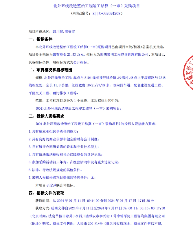北外環(huán)線改造整治工程竣工結算(一審)采購項目公告