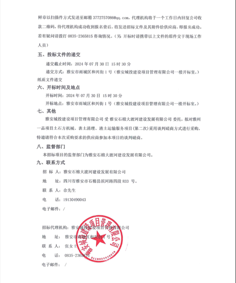雅州一品項目土石方機(jī)械、表土清理、渣土運(yùn)輸服務(wù)項目(第二次)公告