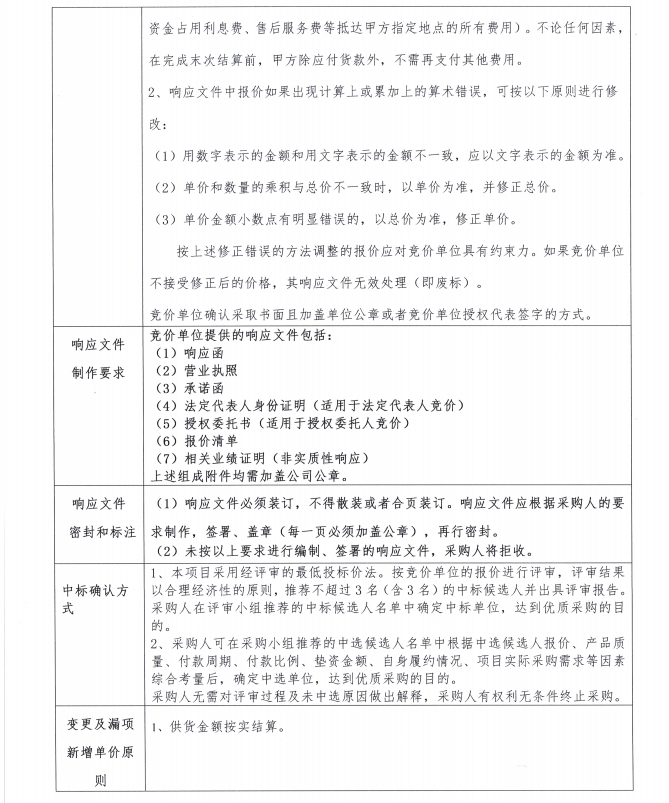 響應文件格式-含報價清單