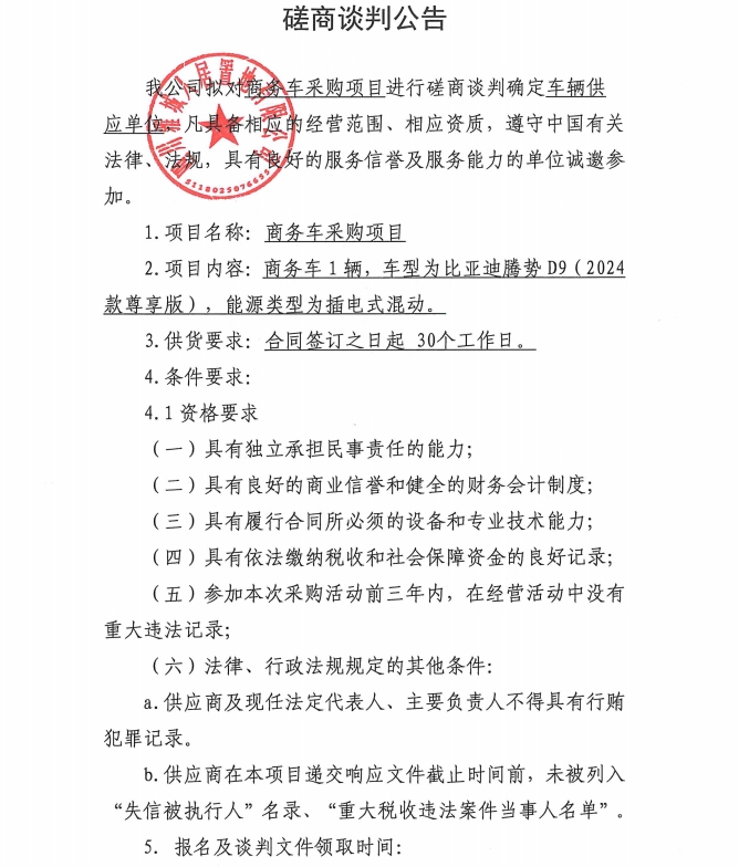 商務(wù)車采購(gòu)項(xiàng)目磋商談判公告