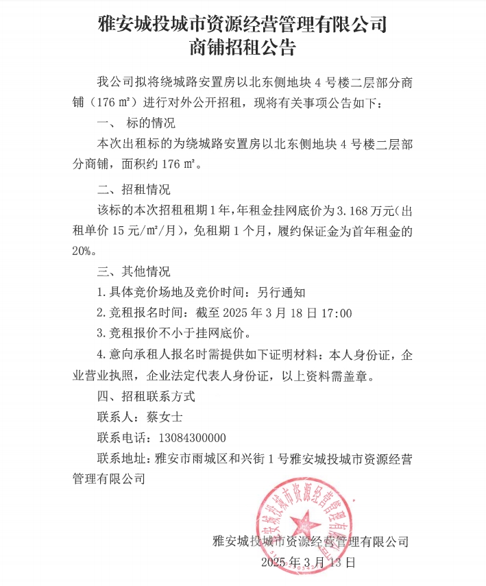 繞城路安置房以北東側(cè)地塊4號(hào)樓二層部分商鋪招租公告
