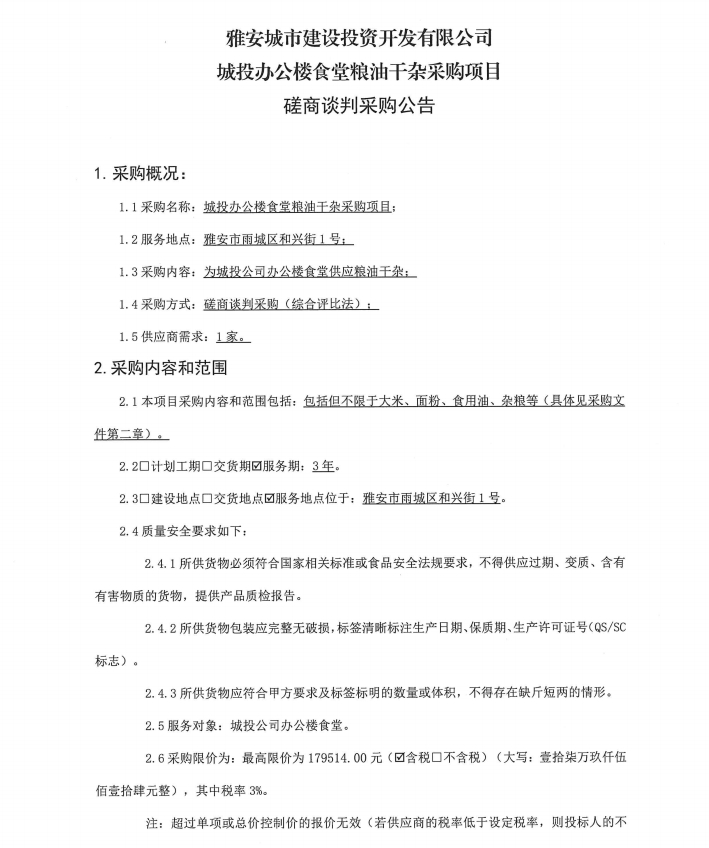 城投辦公樓食堂糧油干雜采購(gòu)項(xiàng)目磋商談判采購(gòu)公告